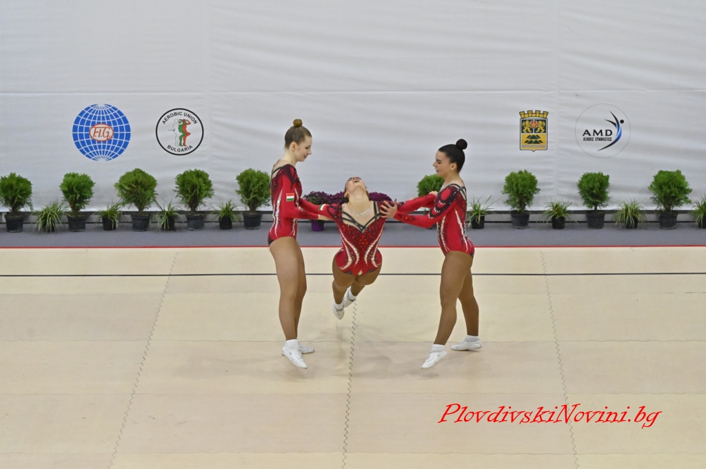 В категория тройки Виктория Крушарска, Теодора Рибарова и Кристина Костова са първи с 18.050 точки, а Неда Запрянова, Мария Вълчева и Стефани Лечева завършиха седми със 17.350.