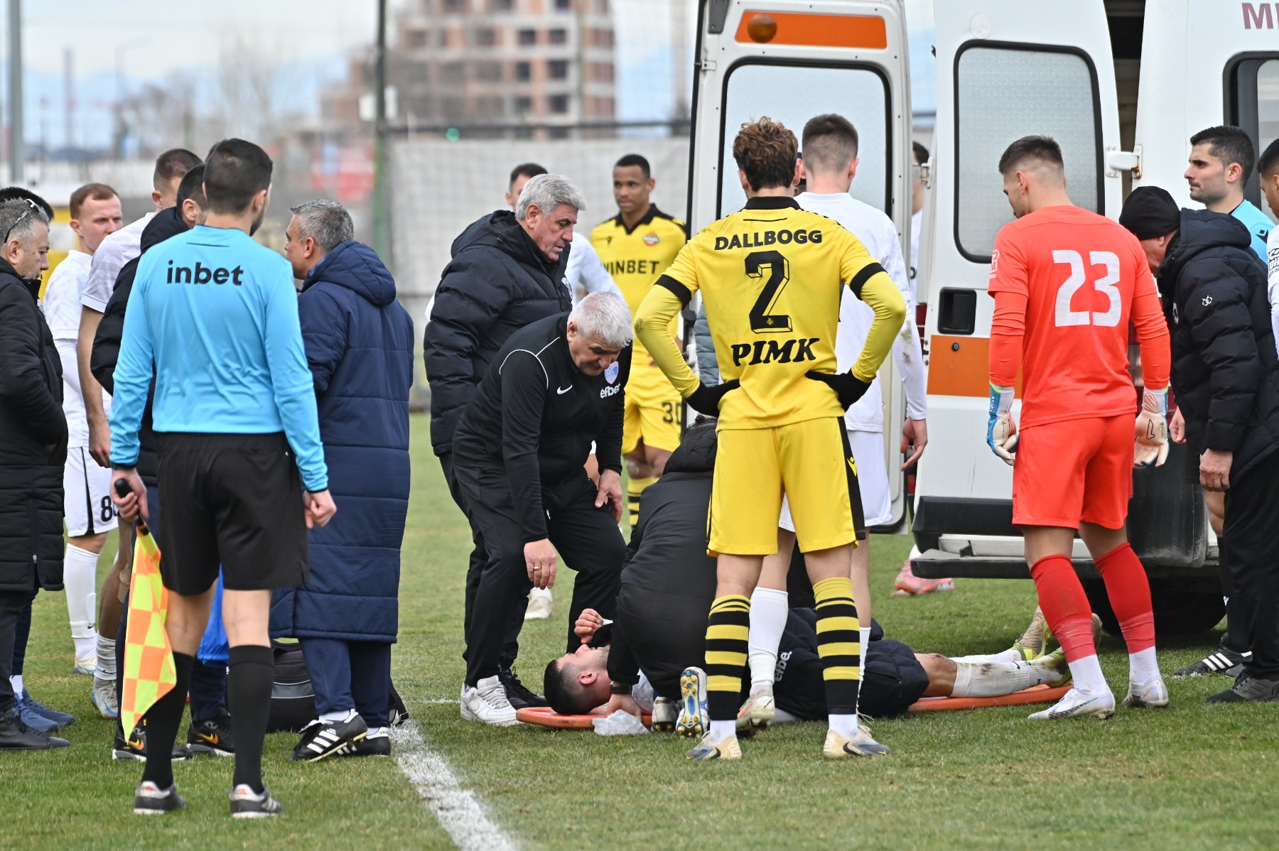И двамата футболисти паднаха на земята, но този на Ботев се изправи бързо, докато Лозев стоя няколко минути неподвижен. Малко по-късно линейка пристигна на терена и отведе футболиста към болницата за следващи прегледи. На камерата обаче се видя, че Лозев все пак свали лентата от ръката си, когато влезе в линейката, което означава, че той е бил в съзнание.
