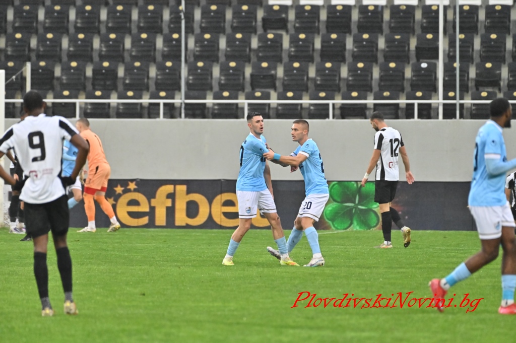 В петата минута на добавеното време към първата част след центриране от корнер Феликс Ебоа Ебоа бе оставен непокрит и засече топката във вратата на Милосавлиевич - 0:2.