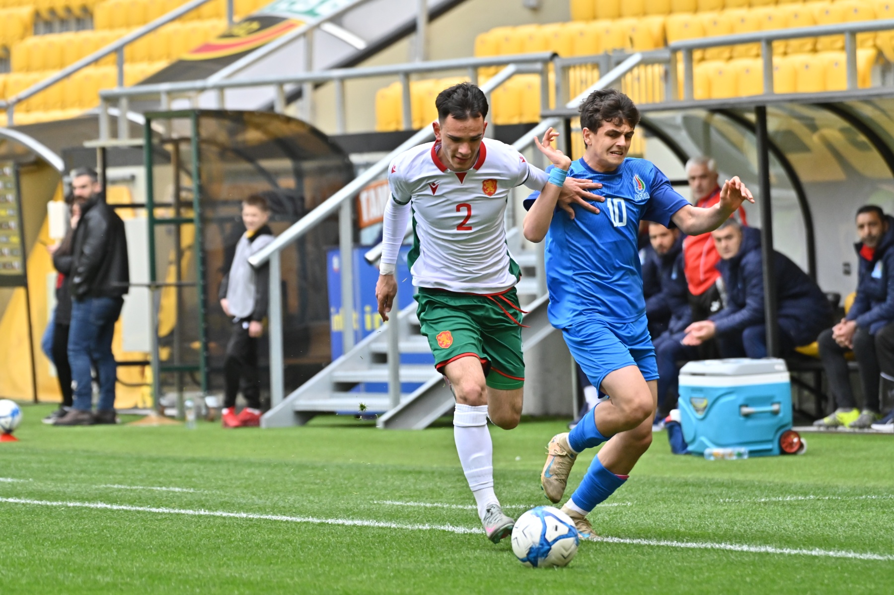 Българският тим показа активна и организирана игра, като създаде няколко добри положения пред вратата на съперника. Още в началните минути Александър Маринов отправи опасен удар с глава след центриране отляво, но вратарят на гостите реагира навреме. Малко по-късно Николай Попов се озова в отлична позиция зад защитата, но не успя да преодолее стража на Азербайджан.